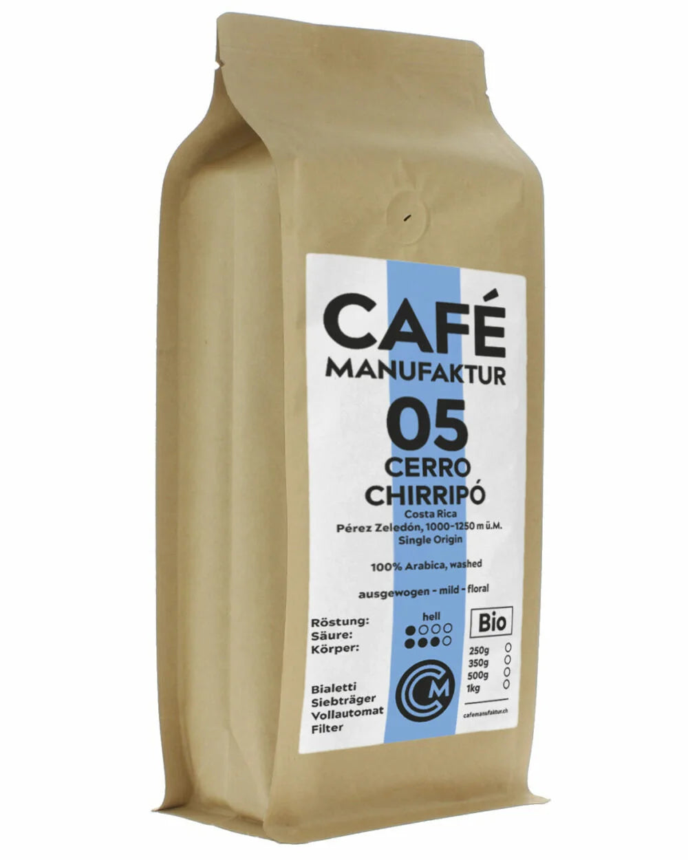 Cherro Chirripò ist ein aromatischer, ausgewogener Arabica aus Costa Rica. Seine feinen Aromen werden durch unsere helle bis mittlere Röstung schön hervorgehoben. Er eignet sich für Espresso oder Kaffeezubereitungen mit Milch. Auch Zubereitungen mit Filter oder French Press sind je nach Mahlgrad möglich.