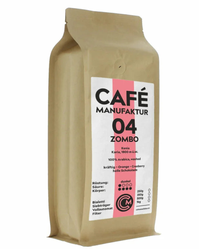 Dieser kräftige und sortenreine Kaffee stammt aus der Region rund um den Mount Kenya (5200 m ü. M.) und wächst auf vulkanischem Boden mit ausgeprägtem Säuregehalt. Geröstet schmecken die Bohnen fruchtig nach Orange und Cranberry und einem Abgang von Schokolade. Wir röstet diese Bohne eher dunkel für einen intensiven Espresso.
